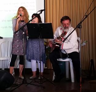 במסיבת יום ההולדת של מני הושר השיר על ידי אביגייל עם בתה מור.