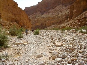 שיטפון בנחל ערוגות, באזור שער השמורה. כאן מתחילה להיות ניכרת ההשפעה של ירידת המפלס של ים המלח, הגורמת לנחל להתחתר עמוק יותר ולהרוס את האפיק הוותיק שלו. האחראים לירידת מפלס ים המלח, כידוע, הם כל השואבים מים מהירדן לצרכי חקלאות והשואבים מים מצפון ים המלח להעברתם לאגן הדרומי לצרכי מפעלי ים המלח.