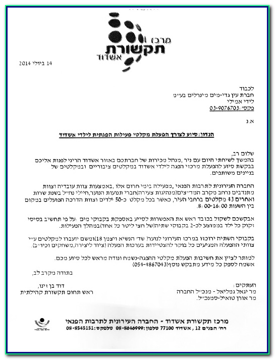 מצ"ב בקשה לתרומה של מרכז תקשורת אשדוד – החברה העירונית לתרבות הפנאי, באמצעות ניר אליאש מנהל אזור של סוכנים (וולפסון, חינאווי).