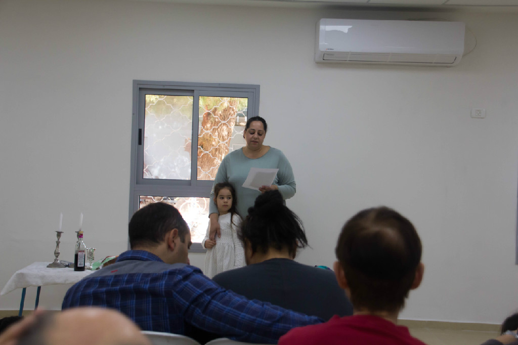 בפתיחה קראה עידית הקר, רכזת הגיל הרך, מילים שכתב נמרוד הקר, מנהל הקהילה (ובן זוגה):