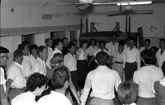 חולצות לבנות בוהקות, שירה וריקודי הורה סוערים בוקעים מהתמונה של חלוצי המתיישבים בעין גדי.