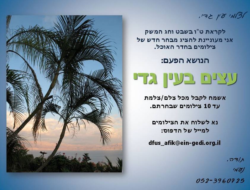 נעמי התאימה הפעם את הנושא לאירוע ולכבוד ט"ו בשבט קושט חדר האוכל בצילומים של תושבי המקום בנושא: עצים בעין גדי