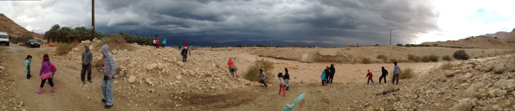 ולקינוח סיפק לנו תום גבע את הפנורמה היפה הזו - ילדי מועדונית א-ו, שלימודיהם היום הושבתו עקב השיטפונות - ירדו לנחל ערוגות ליהנות מחוויית השיטפון, שהיא תמיד-תמיד מרהיבה ומלהיבה.
