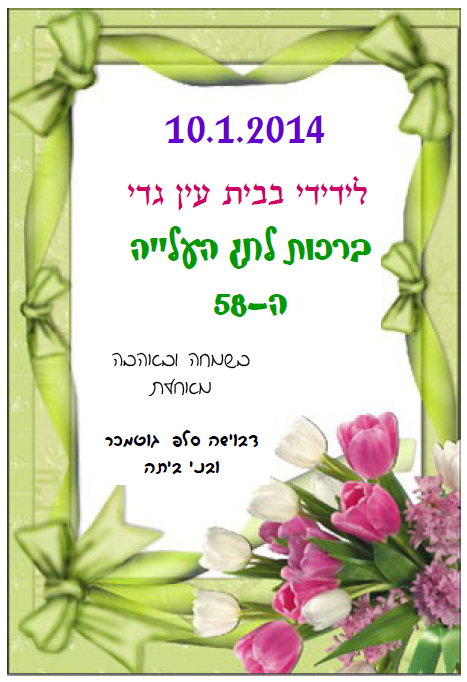 לחצו כאן כדי לראות סרטון שצילמה שר רובל בסלולרי.האולם היה מלא מפה לפה, וכל הקהל השמח הזה זרם אחר כך ישירות לחדר האוכל, שם, ברחבה, המתינה להם מצגת התמונות הנוסטלגית והמהנה של עין גדי המערבת צילומי ארכיון עם צילומים עכשוויים - שאנשים נהנים להתבונן, לזהות, להתווכח מי זה היה ואיפה ומתי צולם... ולאחר מכן כובד הקהל בארוחת ערב חגיגית בניצוחו של יוסי האקונום.