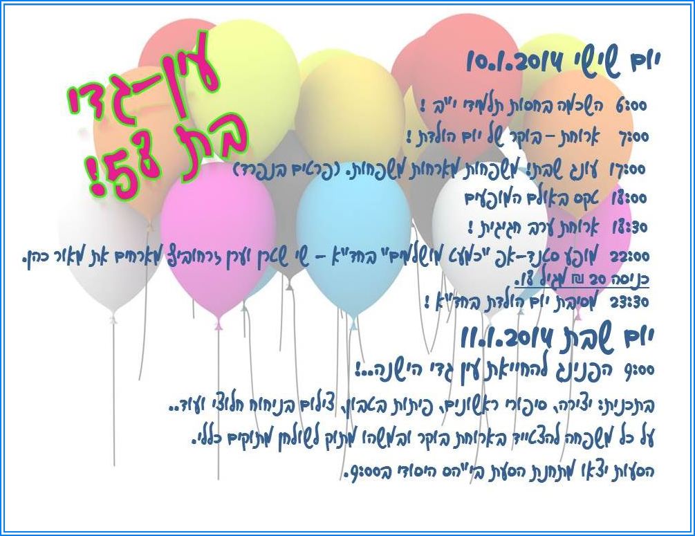 את אירועי החג פתחה כרגיל השכמת הבוקר הקולנית של נוער עין גדי שללא ספק העירה את כל החי בעין גדי והזכירה והזמינה את כולם לארוחה חגיגית בחדר האוכל.
