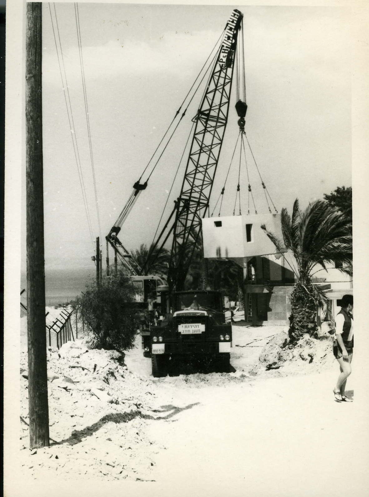 בית יביל מורד באמצעות מנוף למיקומו החדש - 1978